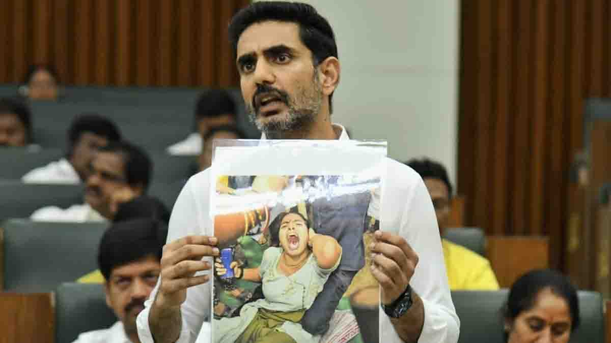 IT and Education Minister Nara Lokesh presented photographs in the Assembly highlighting past protest incidents. He said these visuals reflected the situation during the Amaravati agitation.