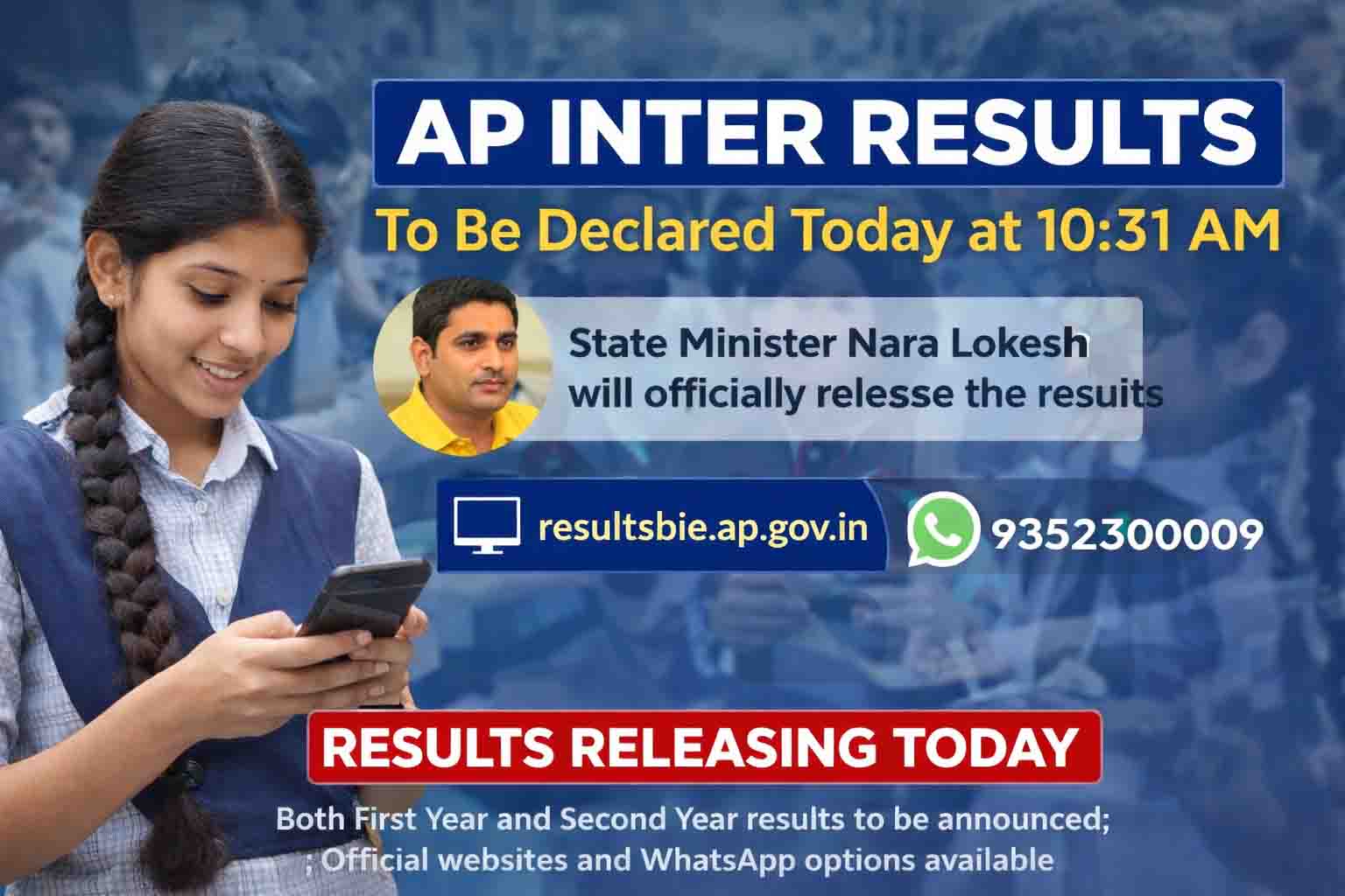 The much-awaited AP Inter Results 2026 will be declared today at 10:31 AM, bringing relief and excitement to lakhs of students across Andhra Pradesh. The results for both first-year and second-year intermediate students will be officially announced by Nara Lokesh, marking a crucial academic milestone for students.