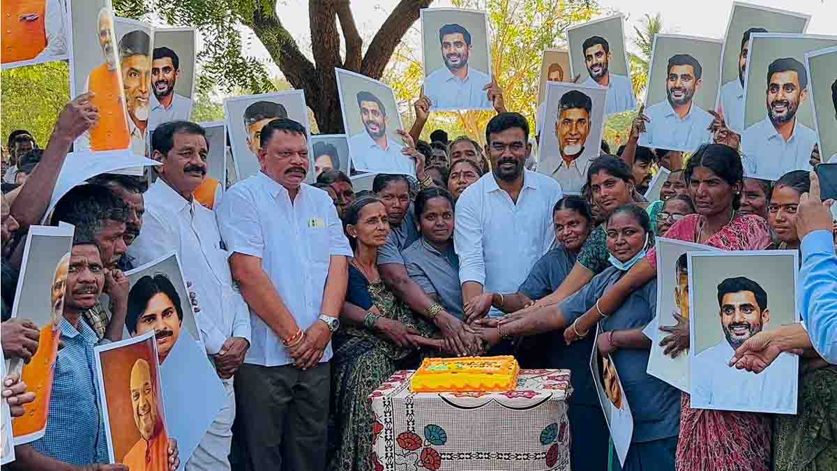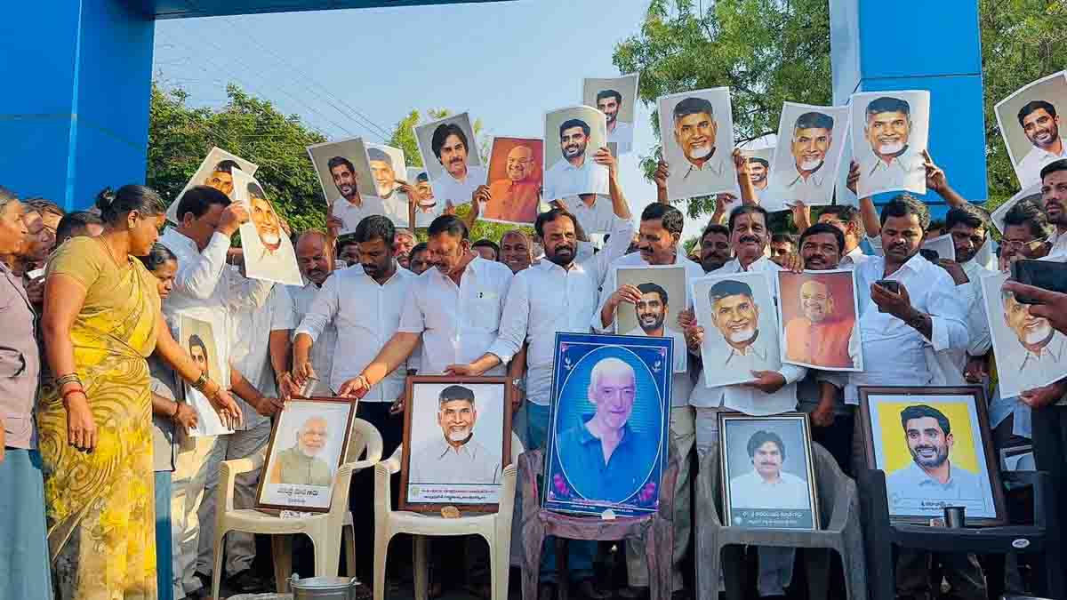 Celebrations were held at the RDT Hospital premises to mark the development. Party leaders and supporters performed milk abhishekam to the portraits of Narendra Modi, N. Chandrababu Naidu, Pawan Kalyan, and Nara Lokesh.