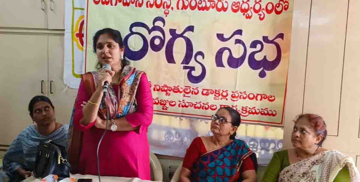 Dr Niharika Jonnalagadda speaking at a kidney disease awareness meeting organized by Avagahana Organisation in Arundelpet, Guntur.